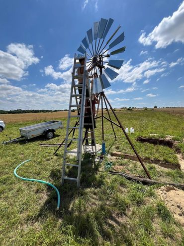 Na okraji nášho pozemku stojí zvláštny stroj – vysoká kovová konštrukcia s vrtuľou, ktorá sa otáča, keď fúka vietor. Nie je to obyčajný veterník – je to veterné čerpadlo, ktoré dokáže niečo úžasné: čerpať vodu až 15metrov spod povrchu zeme pomocou sily vetra!