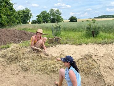 Voda potom pretečie hadicou do vodozádržného jazierka, ktoré sme vybudovali hneď vedľa čerpadla. Toto jazierko slúži ako napájadlo pre divožijúcu zver – vtáky, ježkovia, srnky, líšky, včely a iné zvieratká si sem môžu prísť napiť, schladiť sa alebo sa len tak osviežiť. Skús nájsť ich stopy na okraji jazierka.